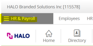 - Click the gray menu at the top left labeled “HR & Payroll”
