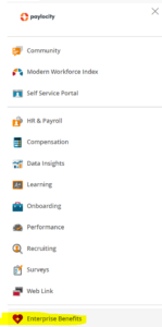 - Navigate to Enterprise Benefits (last item in the drop-down)